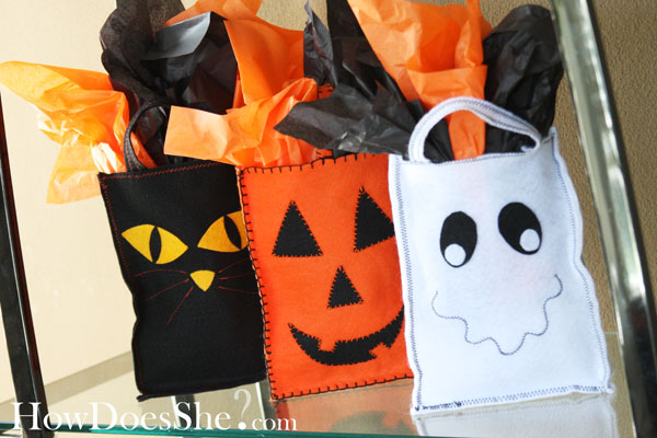 I have a feeling I will be making these bags from How Does She. She shows you how to make them in a guest post over on eighteen25. They'd be cute for gift bags, but also for Trick-or-Treating: